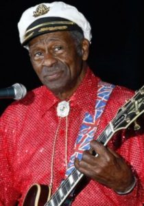 Charles Edward Anderson Berry (18 de octubre de 1926 – 18 de marzo de 2017), conocido como Chuck Berry, fue un guitarrista, cantante y compositor Americano. Nacido en St. Louis, Missouri, Berry fue el cuarto hijo de una familia de seis miembros. Creció en el Noord-St. Louisbuurt, conocida como la Ville, un área donde vivían muchos civiles. Su padre, Henry William Berry (1895-1987), fue contratista y diácono de una iglesia bautista cercana; su madre, Martha Bell (Banks) (1894-1980), fue una directora de una escuela pública certificada. La educación de Berry le permitió seguir su interés por la música desde una edad temprana. Dio su primera aparición pública en 1941 cuando aún estaba estudiando en la Escuela Secundaria Sumner; todavía era un estudiante allí en 1944, cuando fue arrestado por un robo a mano armada después de robar tres tiendas en Kansas City, Missouri, y luego disparar un auto con algunos amigos. El relato de Berry en su autobiografía es que su auto se descompuso y derribó un auto que pasaba y lo disparó a punta de pistola con un arma no funcional. Fue sentenciado y enviado al Reformatorio Intermedio para Hombres Jóvenes en Algoa, cerca de Jefferson City, Missouri, donde formó y encajonó un cuarteto de canto. El grupo de cantantes se volvió tan competente que las autoridades les permitieron hacerlo fuera del centro de detención. Berry fue liberado del reformatorio en su cumpleaños número 21 en 1947. El 28 de octubre de 1948, Berry se casó con Themetta «Toddy» Suggs, quien dio a luz a Darlin Ingrid Berry el 3 de octubre de 1950. Berry apoyó a su familia al tomar varios puestos de trabajo en St. Louis, trabajando brevemente como obrera en dos plantas de ensamblaje y en Conserje en el complejo de apartamentos donde vivían él y su esposa. Luego pasó a ser esteticista en el Poro College of Cosmetology, fundado por Annie Turnbo Malone. En 1950, lo hizo lo suficientemente bien como para comprar una «casa pequeña de tres habitaciones y una casa de baños» en Whittier Street, que ahora figura como la Casa Chuck Berry en el Registro Nacional de Lugares Históricos. A principios de la década de 1950, Berry trabajó con bandas locales en clubes de St. Louis como una fuente adicional de ingresos. Él ha estado tocando blues desde su adolescencia, y tomó prestadas técnicas de guitarra y riffs del músico de blues T-Bone Walker. También tomó lecciones de guitarra de su amigo Ira Harris, quien sentó las bases de su estilo de guitarra. A principios de 1953, Berry se presentó con el trío de Johnnie Johnson, con el que entró en una colaboración a largo plazo con el pianista. La banda tocaba principalmente blues y baladas, pero la música más popular entre los blancos en el área era el país. La destreza teatral calculada de Berry, junto con una mezcla de melodías de country y canciones de R&B, cantadas al estilo de Nat King Cole ambientada en la música de Muddy Waters, atrajo a un público más amplio, especialmente a gente blanca adinerada. En mayo de 1955, Berry viajó a Chicago, donde conoció a Muddy Waters, quien sugirió ponerse en contacto con Leonard Chess de Chess Records. Berry pensó que su música blues estaría más interesada en el ajedrez, pero para su sorpresa era una melodía tradicional de violín, «Ida Red», según lo grabado por Bob Wills, que llamó la atención de Chess. El 21 de mayo de 1955, Berry grabó una adaptación de la canción «Ida Red», bajo el título «May bellene», con Johnnie Johnson al piano, Jerome Green (de la