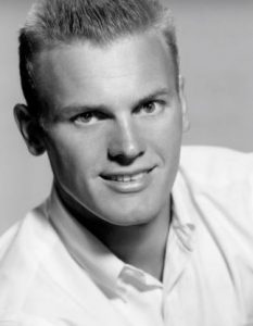 Tab Hunter (11 de julio del 1931 – 8 de julio del 2018) fue un actor Americano, cantante, productor de cine y autor. Hunter nació Arthur Andrew Kelm en la ciudad de Nueva York, hijo de Gertrudis (Gelien) y Charles Kelm. Su padre era judío y su madre era una inmigrante católica alemana de Hamburgo. Él tenía un hermano mayor, Walter, y dos medias hermanas paternas, Sarah y Rebecca. El padre de Hunter fue supuestamente grosero y el divorcio dentro de unos pocos años después de su nacimiento, sus padres. Se crió en California, vivía con su madre, hermano y abuelos maternos, John Henry e Ida (Sonnenfleth) Gelien, que vive en San Francisco, Long Beach y Los Ángeles. Su madre volvió a su apellido de soltera, Gelien, y también cambió los nombres de sus hijos. Como adolescente Arthur Gelien, como era conocido, una patinadora que compitió tanto en individuales como pares. Hunter fue enviado a la escuela católica por su madre religiosa. Llegó a la edad de 15 años en el Servicio de Guardacostas de los Estados Unidos y mintió sobre su edad para ser voluntario. Cuando estaba en la Guardia Costera, fue apodado mirada ‘Hollywood’ a causa de su amor por las películas en lugar de ir a bares, mientras que él era libre. Cuando se descubrió su edad, que fue despedido por la Guardia Costera. Se reunió con el actor Dick Clayton social; Clayton Hunter sugirió que se convertiría en un actor. Clayton Hunter introducido por el agente Henry Willson, que se especializó en las estrellas «Pretty Boy» como Guy Madison y Robert Wagner. Fue Willson que lo llamó «Tab Hunter». El primer papel de la película de Hunter era un papel secundario en una película de cine negro, The Lawless (1950). Era amigo de actor Paul Guilfoyle, que sugirió que el director Stuart Heisler, que estaba buscando a un extraño para tomar la iniciativa en la isla del deseo (1952) opuesta Linda Darnell. La película, esencialmente una de dos manos entre Hunter y Darnell, fue un éxito menor. Hunter apoyó George Montgomery Correa de arma (1953), un western producido por Edward Pequeño. lo más pequeño utilizado para una película de guerra, La dama de acero (1953), que apoya y Rod Cameron como protagonista de una historia de aventuras, de la vuelta a la isla del tesoro (1954). Comenzó a actuar en el escenario y apareció en una producción de nuestra ciudad. a continuación, se le ofreció un contrato de Warner Bros. Uno de la primera película de Hunter para la Warner era el mar Chase (1955), en apoyo de John Wayne y Lana Turner. Fue un gran éxito, pero la cuota de Hunter era relativamente pequeña. Juncos fueron vistos por William A. Wellman, Hunter le llevó a jugar el hermano menor de Robert Mitchum en la pista del gato (1955). Fue un éxito sólido y Hunter comenzó a recibir más atención. Su avance se produjo cuando fue elegido como el joven marine Danny en el drama de la Segunda Guerra Mundial Battle Cry de 1955. Fue Warner Bros. más grande película de beneficio bruto de ese año, por lo que la posición de Hunter se fortalece como uno de los mejores papeles románticos jóvenes de Hollywood. Era el tercero (Battle Cry) y décimo (El Mar Chase) película más popular del año. En 1956 recibió 62.000 San Valentín. Hunter, James Dean y Natalie Wood fueron los últimos actores que fueron colocados en el estudio Warner Bros. en virtud de un contrato de exclusividad. Warner decidieron promoverlo a la estrella de estado, que, junto con Natalie Wood en dos películas, una película del oeste, las colinas de Burning (1956), dirigida por Heisler y la muchacha que dejó atrás (1956), un servicio de comedia. Estas películas también resultaron éxitos con el público y la Warner planearon un tercer equipo de Hunter y madera. Hunter se negó la tercera imagen y así terminó el intento de Warner a Hunter y Wood William Powell y Myrna Loy en la década de 1950. Hunter fue Warner Bros. «La mayor estrella masculina populares desde 1955 a 1959. Hunter tenía hit record en el 1957 con la canción» Young Love», que era el número seis en el Billboard Hot 100 durante seis semanas (siete semanas en las listas del Reino Unido) y una los éxitos más grandes del rock ‘n’ roll época. Se vendieron más de un millón de copias y recibió un disco de oro por la RIAA. Tuvo otro exitoso single, «Ninety-Nine Ways», que alcanzó el puesto número 11 en los Estados Unidos y el número 5 en el Reino Unido. La carrera de actor de Hunter también estaba en su apogeo. William Wellman lo usó de nuevo en una película de guerra, Lafayette Escadrille (1958). Columbia Pictures lo prestó para un western, Gunman’s Walk (1958), una película en la que Hunter consideraba su papel favorito. Hunter jugó en la película musical de 1958 Damn Yankees, en la que interpretaba a Joe Hardy de Washington, el club de béisbol estadounidense de D.C. La película era originalmente un espectáculo de Broadway, pero Hunter era el único en la versión cinematográfica que no había aparecido en el reparto original. El espectáculo se basó en el libro de Douglass Wallop The Year the Yankees Lost the Pennant en 1954. En 1959 jugó en las películas, Vinieron a Cordura y Ese tipo de mujer. El cazador de la lengüeta espectáculo tenía calificaciones moderadas (por programado en el Show de Ed Sullivan) y duró sólo una temporada (36 episodios), pero fue un gran éxito en el Reino Unido, donde se clasificó como una de las comedias topsituatie del año. Hunter jugó un papel principal como el interés amoroso de Debbie Reynolds en The Pleasure of His Company (1961). Jugó el papel principal en una grabación de espadachines en Italia, The Golden Arrow (1962) y participó en una película de guerra para American International Pictures, Operation Bikini (1963). En 1964 jugó en Broadway frente a Tallulah Bankhead en Tennessee Williams. El tren de la leche no se detiene aquí. Ride the Wild Surf (1964) fue una película de surf para Columbi