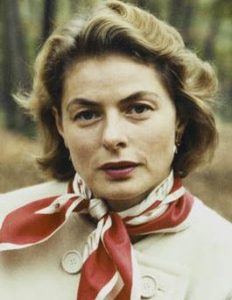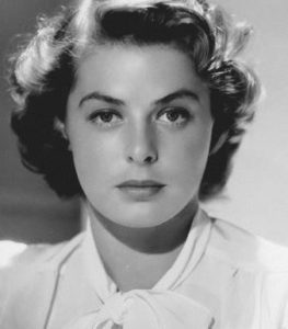 Ingrid Bergman (29 augustus 1915 – 29 augustus 1982) was een Zweedse actrice die in verschillende Europese en Amerikaanse films speelde. Bergman werd geboren op 29 augustus 1915 in Stockholm, van een Zweedse vader, Justus Samuel Bergman (2 mei 1871 – 29 juli 1929), en zijn Duitse vrouw, Friedel Henrietta Augusta Louise (Adler) Bergman (12 september 1884 – 19 januari 1918), die werd geboren in Kiel. Haar ouders trouwden in 1907 in Hamburg. Ze is vernoemd naar prinses Ingrid van Zweden. Ze groeide vooral op in Zweden, maar bracht de zomers door in Duitsland en sprak vloeiend Duits. Toen ze twee jaar oud was, stierf haar moeder. Haar vader, die kunstenaar en fotograaf was, stierf toen ze 13 was. In de jaren voordat hij stierf, wilde hij dat ze een operaster zou worden en had ze drie jaar zangles. Maar ze ‘wist altijd al vanaf het begin dat ze actrice wilde worden’, soms in de kleren van haar moeder en toneelstukken in de lege studio van haar vader. Haar vader documenteerde al haar verjaardagen met een geleende camera. Na de dood van haar vader werd ze gestuurd om bij zijn zus tante Ellen Bergman te wonen, die slechts zes maanden later stierf aan hartziekten. Ze trok vervolgens in bij haar tante Hulda en oom Otto, die vijf kinderen had. Een andere tante die ze bezocht, Elsa Adler, die Ingrid “Mutti” noemde. Later ontving Bergman een beurs voor de staat gesponsorde Royal Dramatic Theatre School, waar Greta Garbo enkele jaren eerder een vergelijkbare beurs had verdiend. Na enkele maanden kreeg ze een rol in een nieuw stuk, Ett Brott (A Crime), geschreven door Sigfrid Siwertz. Chandler merkt op dat dit “volledig tegen de procedure” was op de school, waar van meisjes werd verwacht dat ze drie jaar studie zouden voltooien voordat ze dergelijke acteerrollen kregen. Tijdens haar eerste zomervakantie werd Bergman ingehuurd door een Zweedse filmstudio, waardoor ze na slechts een jaar het Koninklijk Dramatisch Theater verliet om voltijds in films te werken. Tijdens haar eerste zomervakantie werd Bergman ingehuurd door een Zweedse filmstudio, waardoor ze na slechts een jaar het Koninklijk Dramatisch Theater verliet om voltijds in films te werken. Haar eerste filmrol na het verlaten van het Koninklijk Dramatisch Theater was een klein onderdeel in Munkbrogreven (1935), hoewel ze naar verluidt eerder een extra was geweest in de 1932 film Landskamp. Ze speelde vervolgens in een dozijn films in Zweden, waaronder En kvinnas ansikte, dat later opnieuw werd gemaakt als A Woman’s Face met Joan Crawford, en een film in Duitsland, Die vier Gesellen (The Four Companions) (1938). Bergmans eerste acteerrol in de Verenigde Staten kwam toen Hollywood-producent David O. Selznick haar naar Amerika bracht om te schitteren in Intermezzo: A Love Story (1939), een Engelstalige remake van haar eerdere Zweedse film Intermezzo (1936). Omdat ze geen Engels kon spreken en onzeker was over haar acceptatie door het Amerikaanse publiek, verwachtte ze deze ene film af te maken en terug te keren naar Zweden. Haar echtgenoot, Dr. Petter Lindström, bleef in Zweden met hun dochter Pia (geboren in 1938). Ze arriveerde in Los Angeles op 6 mei 1939 en verbleef in het Selznick-huis totdat ze een andere woning kon vinden. Intermezzo werd een enorm succes en als gevolg daarvan werd Bergman een ster. Selznick waardeerde haar uniekheid en met zijn vrouw Irene bleven ze gedurende haar hele carrière belangrijke vrienden. Na het voltooien van een laatste film in Zweden en het verschijnen in drie redelijk succesvolle films (Adam Had Four Sons, Rage in Heaven en Dr. Jekyll and Mr. Hyde, alle 1941) in de Verenigde Staten, speelde