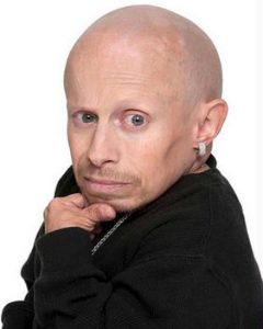 Verne Troyer (1 januari 1969 – 21 april 2018) was een Amerikaanse acteur, stuntdanser en komiek, vooral bekend door het spelen van Mini-Me in de film serie Austin Powers. Troyer werd geboren in Sturgis, Michigan, de zoon van Susan, een fabrieksarbeider, en Reuben Troyer, een reparatietechnicus. Hij had twee broers en zussen, Davon en Deborah. Hij verklaarde dat zijn ouders “hem nooit anders behandeld hadden dan zijn andere broers en zussen van gemiddelde grootte, hij moest vroeger hout dragen, de koeien en varkens voeren en boerderijdieren”. Troyer werd aanvankelijk opgevoed door Amish, maar zijn ouders verlieten het geloof toen hij klein was. Tijdens zijn jeugd bracht Troyer veel tijd door met het bezoeken van Amish-familieleden in Centerville, Michigan. Hij studeerde in 1987 af aan Centerville High School. De filmcarrière van Troyer begon toen een voormalig president van Little People of America contact met hem opmaakte, op zoek naar iemand van een ‘bepaalde grootte’ die als een stuntdubbel kon dienen voor het babypersonage ‘Baby Bink’ in John Hughes ‘film Baby’s Day Out (1994). Hij verdiende verder werk als stuntdubbel met enkele kleine komische rollen in verschillende films uit de jaren 90, waaronder Dunston Checks, Jingle All the Way (beide 1996), Men in Black (1997), en My Giant (1998). Troyer ontmoette voor het eerst Jay Roach om te bespreken Mini-Me in de Austin Powers-serie, geregisseerd door Roach en mede auteur Mike Myers, voordat de verfilming van de tweede film begon. Myers was onder de indruk van de prestaties van Troyer en herschreef het script voor Austin Powers: The Spy Who Shagged Me (1999) om Mini-Me meer schermtijd te geven en de dood van het personage te verwijderen. Troyer hernam drie jaar later de rol in Austin Powers in Goldmember (2002) en werkte opnieuw samen met Myers on The Love Guru (2008). Nadat hij een groot publiek als Mini-Me had bereikt, portretteerde Troyer de goblin Griphook in Harry Potter en de Philosopher’s Stone (2001), en speelde de rol van Percy in Terry Gilliam’s fantasy film The Imaginarium of Doctor Parnassus (2009). Hij maakte ook verschillende optredens als hijzelf in reality-televisieseries, waaronder The Surreal Life (2005), Welcome to Sweden (2007), en de zesde serie van de Britse Celebrity Big Brother (2009). Naar verluidt trouwde hij met model Genevieve Gallen op 22 februari 2004, maar diende de volgende dag een aanvraag tot nietigverklaring in. Hoewel de verloving van het echtpaar veel werd gemeld, ontkenden Troyer en zijn advocaat dat het paar ooit formele huwelijksplannen had gehad, door te zeggen dat Gallen het verhaal verzonnen had voor haar eigen financiële gewin.  Op 25 juni 2008 lekte een privé-homevideo van Troyer en zijn voormalige inwonende vriendin, Ranae Shrider, seks uit. De video, gefilmd in 2008 in Beverly Hills, Californië, en Shrider’s woonplaats Fort Cobb, Oklahoma, werd door Shrider en TMZ aan het publiek uitgelekt. Kevin Blatt, de man die verantwoordelijk was voor het bemiddelen van de deal voor Paris Hilton’s sekstape in 2003, probeerde de video te verkopen. Troyer, door zijn jarenlange advocaat, Ed McPherson, daagde TMZ, Blatt en online verhuurbedrijf SugarDVD, voor de overtreding van de privacy en inbreuk op het auteursrecht. In mei 2015, Troyer, zijn vriendin Brittney Powell en haar zoon Tyson verschenen op Celebrity Wife Swap, waar ze van plaats veranderde met de vrouw van Hines Ward. Begin april 2018 werd Troyer opgenomen in een ziekenhuis na een incident in zijn huis.  Hij was eerder toegelaten tot een revalidatiebehandeling voor alcoholisme. Op 21 april 2018 overleed Troyer op 49-jarige leeftijd. Geen enkele doodsoorzaak werd onmiddellijk vrijgegeven maar zelfmoord wordt vermoed.